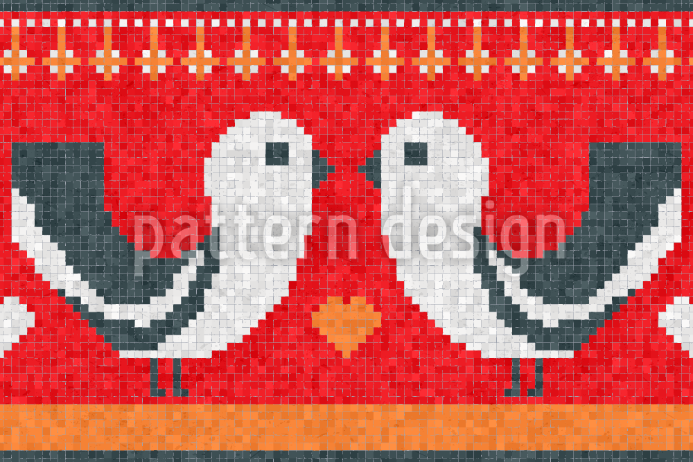 | विवरण | मोज़ेक पैटर्न जिसमें धारियों पर पक्षियों और दिलों को दिखाया गया है। | ||
