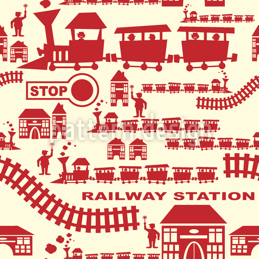 रेलवे स्टेशन रेड सीमलेस वेक्टर पैटर्न डिजाइन