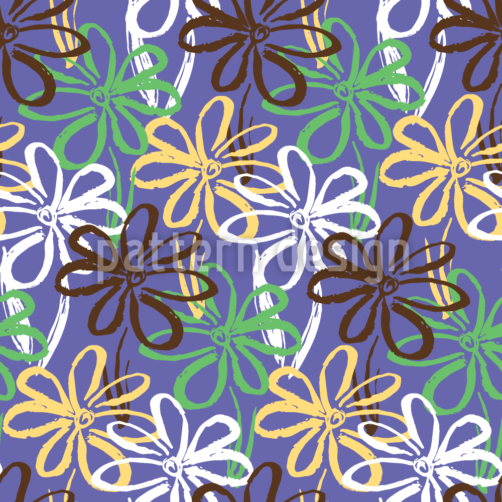 ब्रशस्ट्रोक डेज़ी सीमलेस वेक्टर पैटर्न डिजाइन