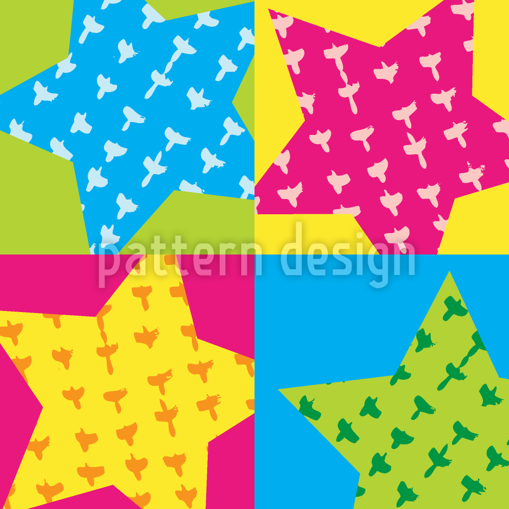 | विवरण | गुलाबी, नीले, पीले और हरे रंग में सितारे। | ||