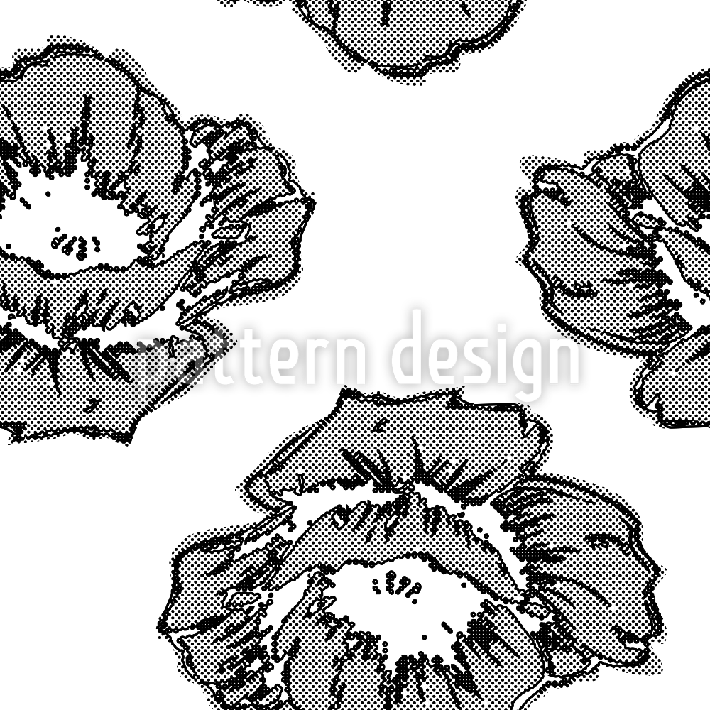 | विवरण | काले और सफेद के साथ बड़े काले खसखस फूल जो स्क्रीनप्रिंटेड की तरह दिखाई देते हैं। | ||
