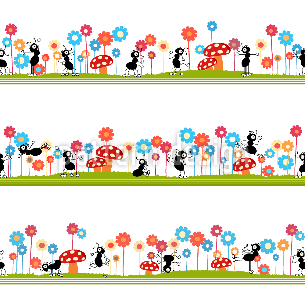 | विवरण | चींटियों, फूलों और मक्खी amanitas के साथ मजेदार सीमा डिजाइन। | ||