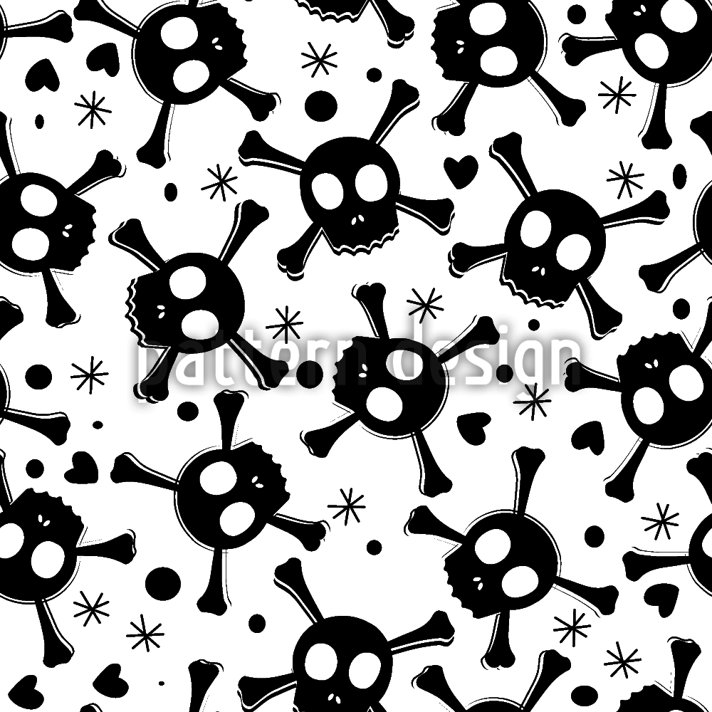 | विवरण | समुद्री डाकू भी प्यार में पड़ते हैं! शैलीबद्ध खोपड़ी गहने, दिल और सितारों के साथ सुपर मिठाई डिजाइन। | ||