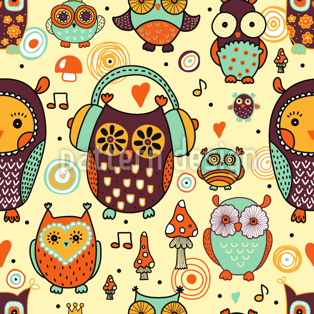 उल्लू लव म्यूज़िक बहुत सीमलेस वेक्टर पैटर्न डिजाइन