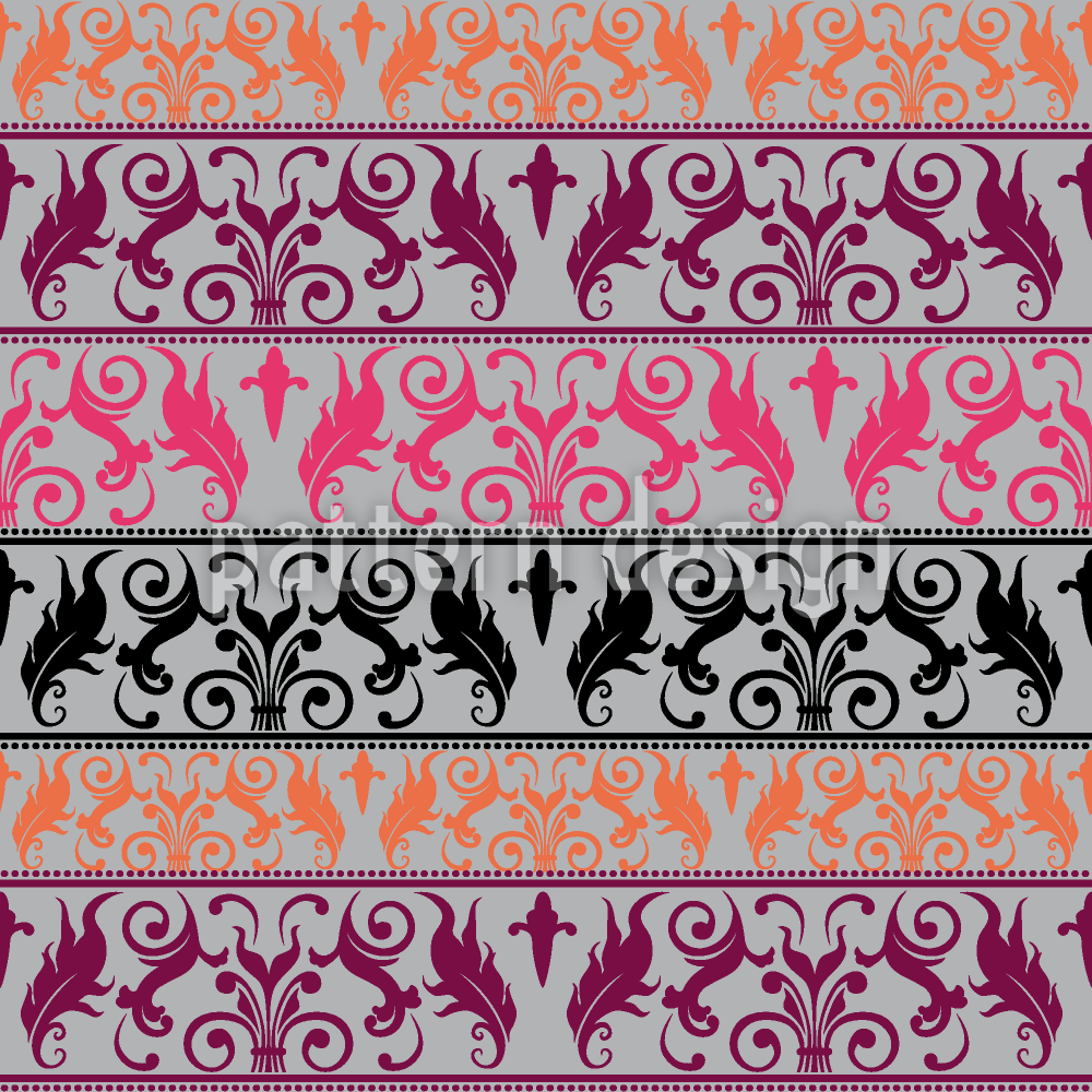 | विवरण | यह ट्रेंडी डिज़ाइन भूरे रंग की पृष्ठभूमि पर अलग-अलग रंगों में विशिष्ट बारोक चित्रों के साथ सीमाओं से बना है। | ||