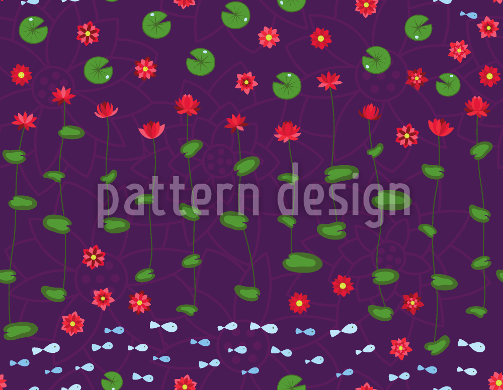 मछली इन द वाटर लिली पॉन्ड सीमलेस वेक्टर पैटर्न डिजाइन
