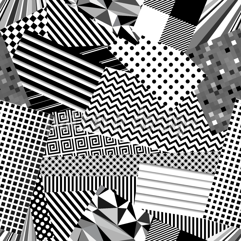 | Descrizione | Molti motivi monocromatici mescolati insieme. | ||