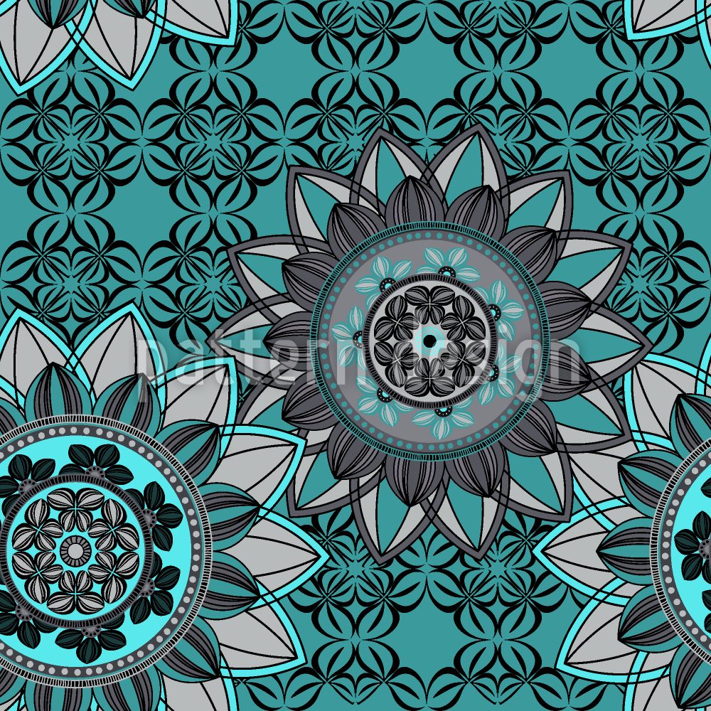 | Descrizione | Ornamento con fiori di mandala su uno sfondo decorato. | ||