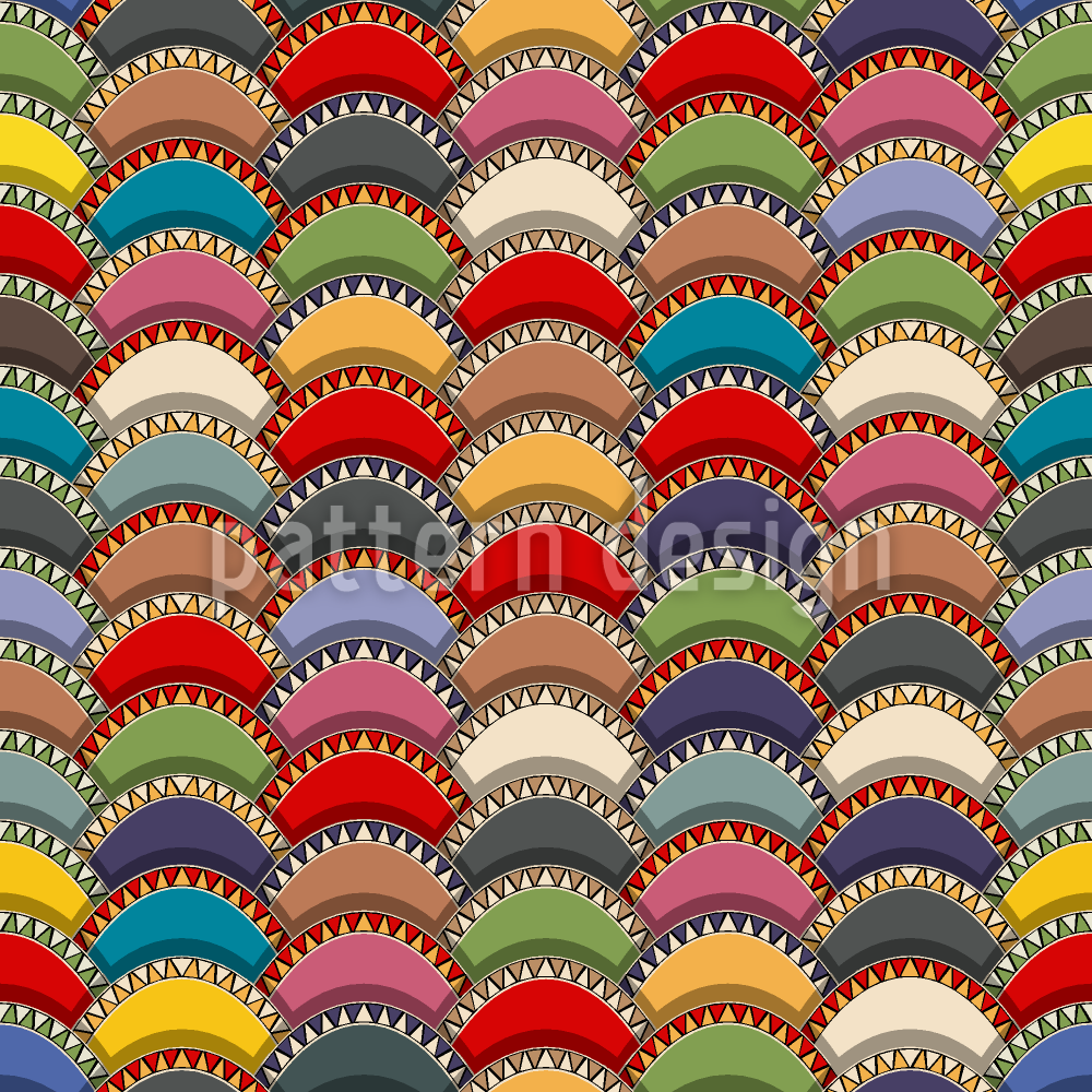 | Descrizione | Disegno astratto con scale di lastre etno sovrapposte. | ||