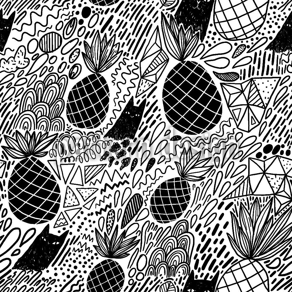 | Descrizione | Motivo con ananas e gatti scarabocchiati. | ||