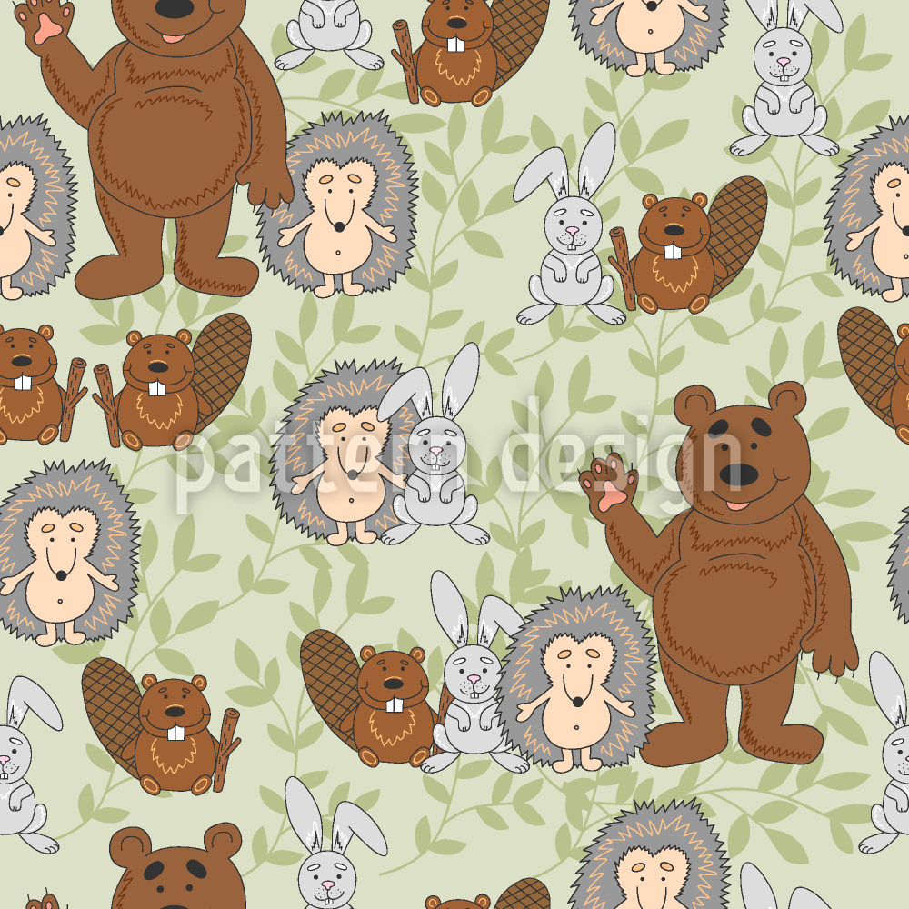 | Descrizione | Modello senza cuciture con orsi amichevoli, ricci, conigli e castori. | ||