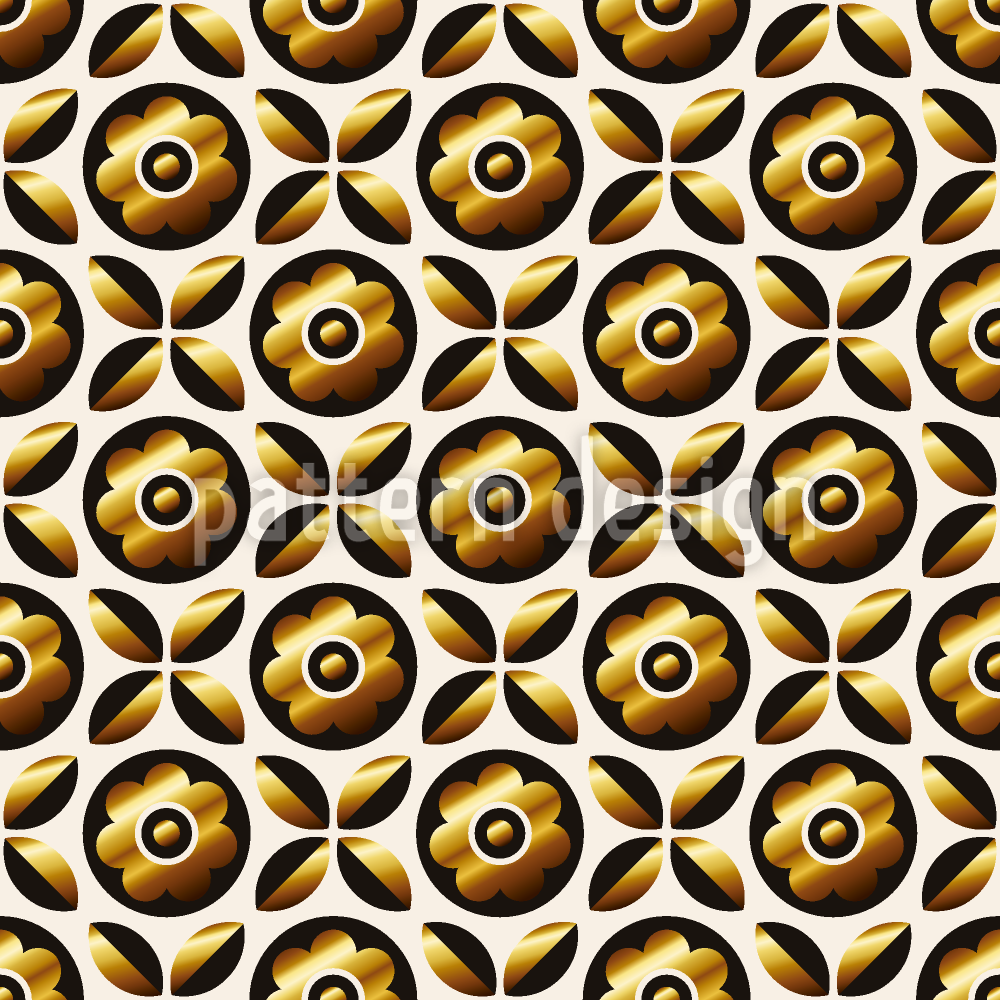 | Descrizione | Modello retrò senza soluzione di continuità con fiori e foglie dorate. | ||