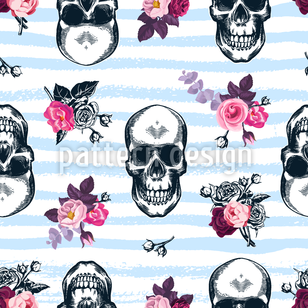 | Descrizione | Motivo vintage con teschi e fiori su righe. | ||