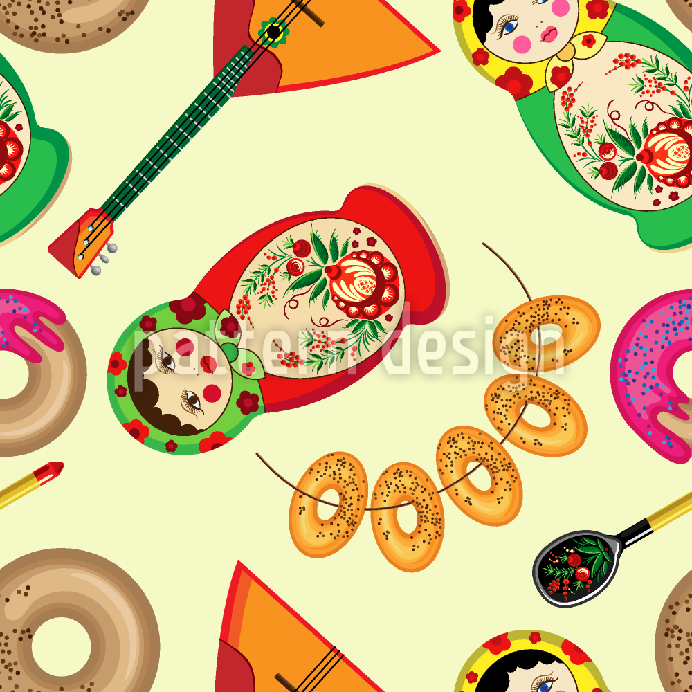 | Descrizione | Modello senza cuciture con Matrjoschka e oggetti slavi. | ||
