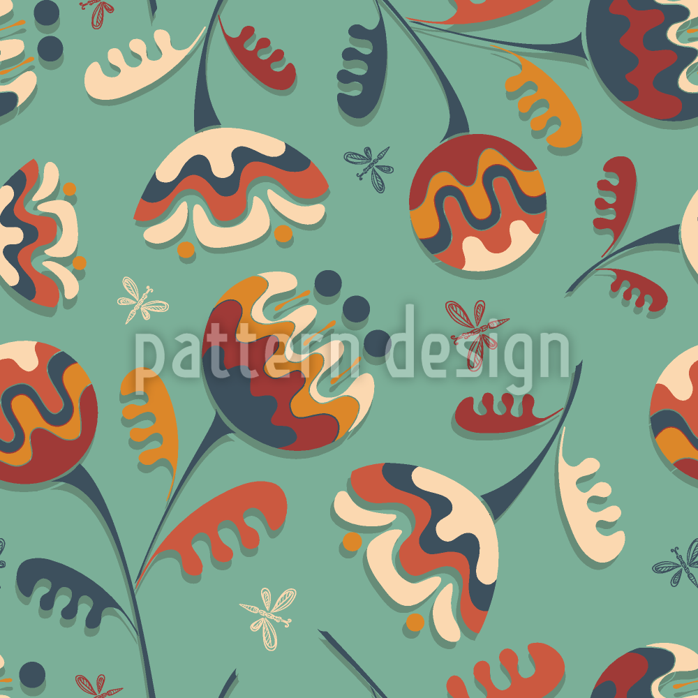Fiori ondulati fiabeschi disegni vettoriali senza cuciture