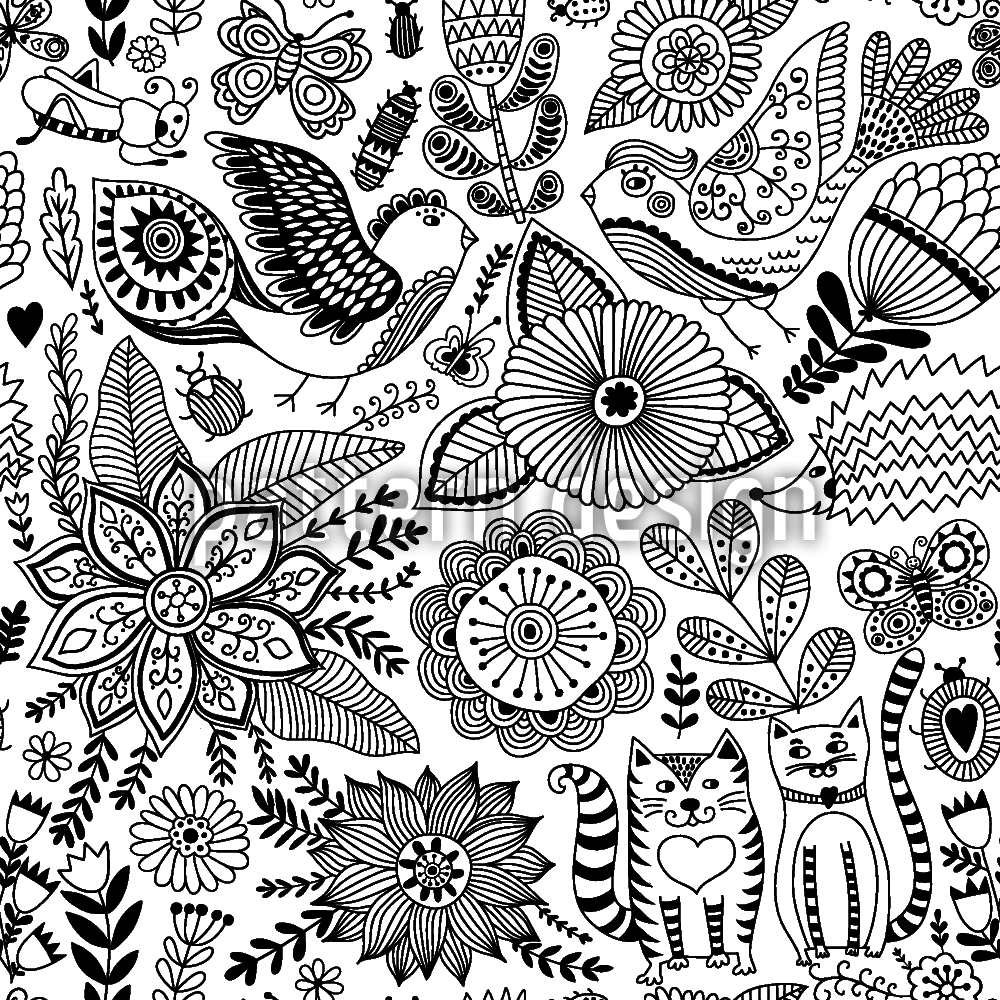 | Descrizione | Fiori stilizzati, uccelli, gatti e insetti con ornamenti. | ||