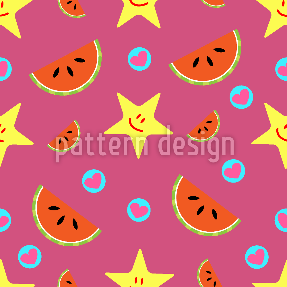 | Descrizione | Design senza cuciture con un mix di angurie, stelle e cuori. | ||