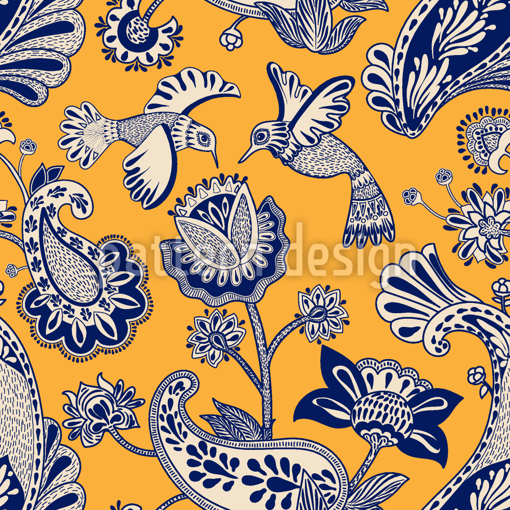 | Descrizione | Modello senza cuciture con fiori e uccelli decorativi. | ||