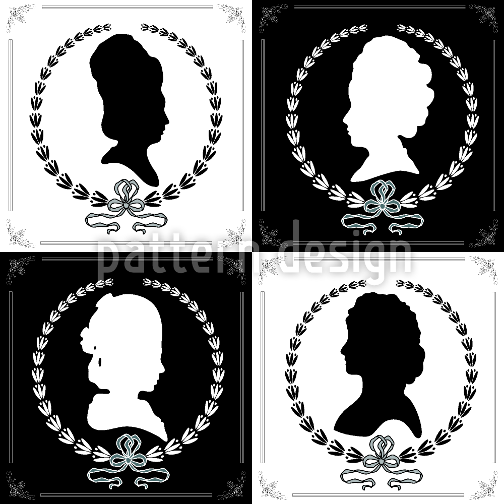 | Descrizione | Sagome femminili di profilo come cameo. Design vecchio stile bianco e nero in stile vittoriano | ||