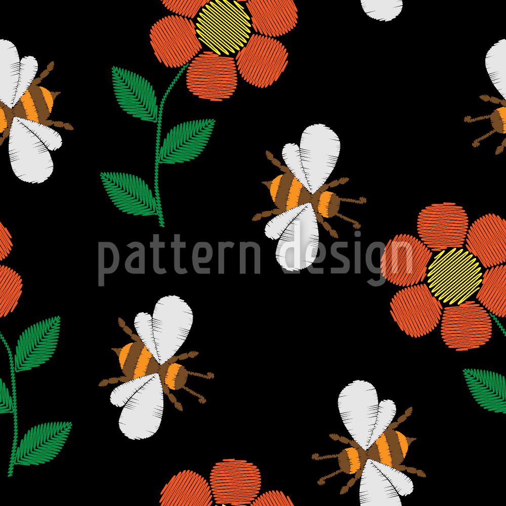 Api e fiori ricamati disegni vettoriali senza cuciture