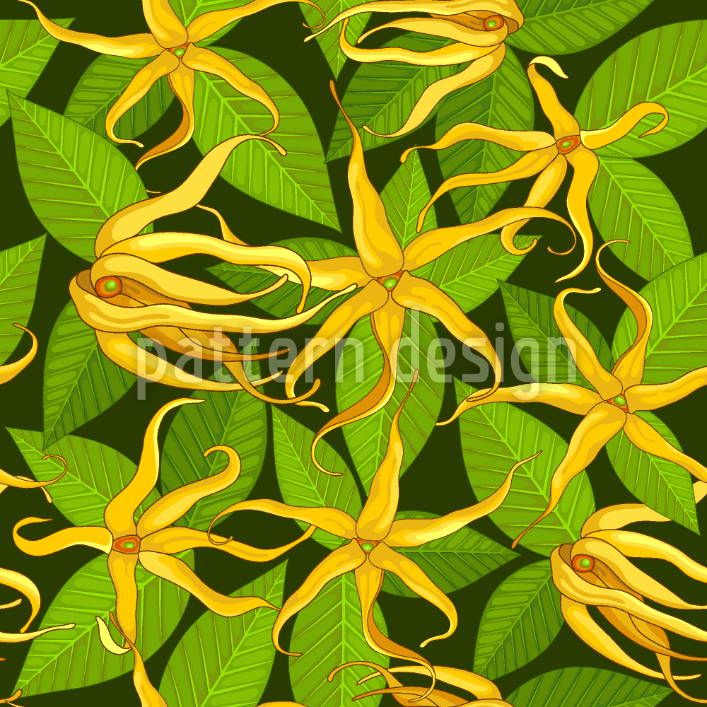 | Descrizione | Modello senza cuciture con fiori esotici di Ylang Ylang Cananga Odorata e le sue foglie. | ||