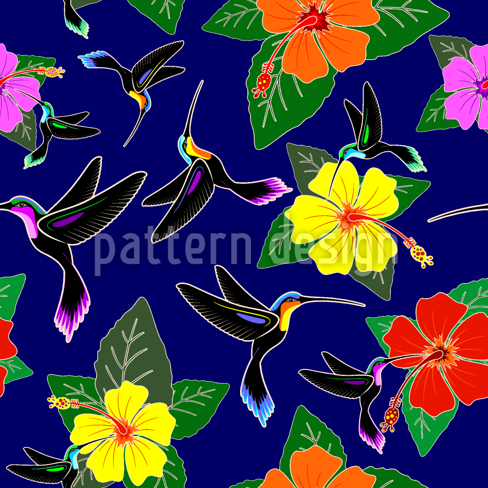 | Descrizione | Motivo esotico con colibrì e fiori di ibisco. | ||