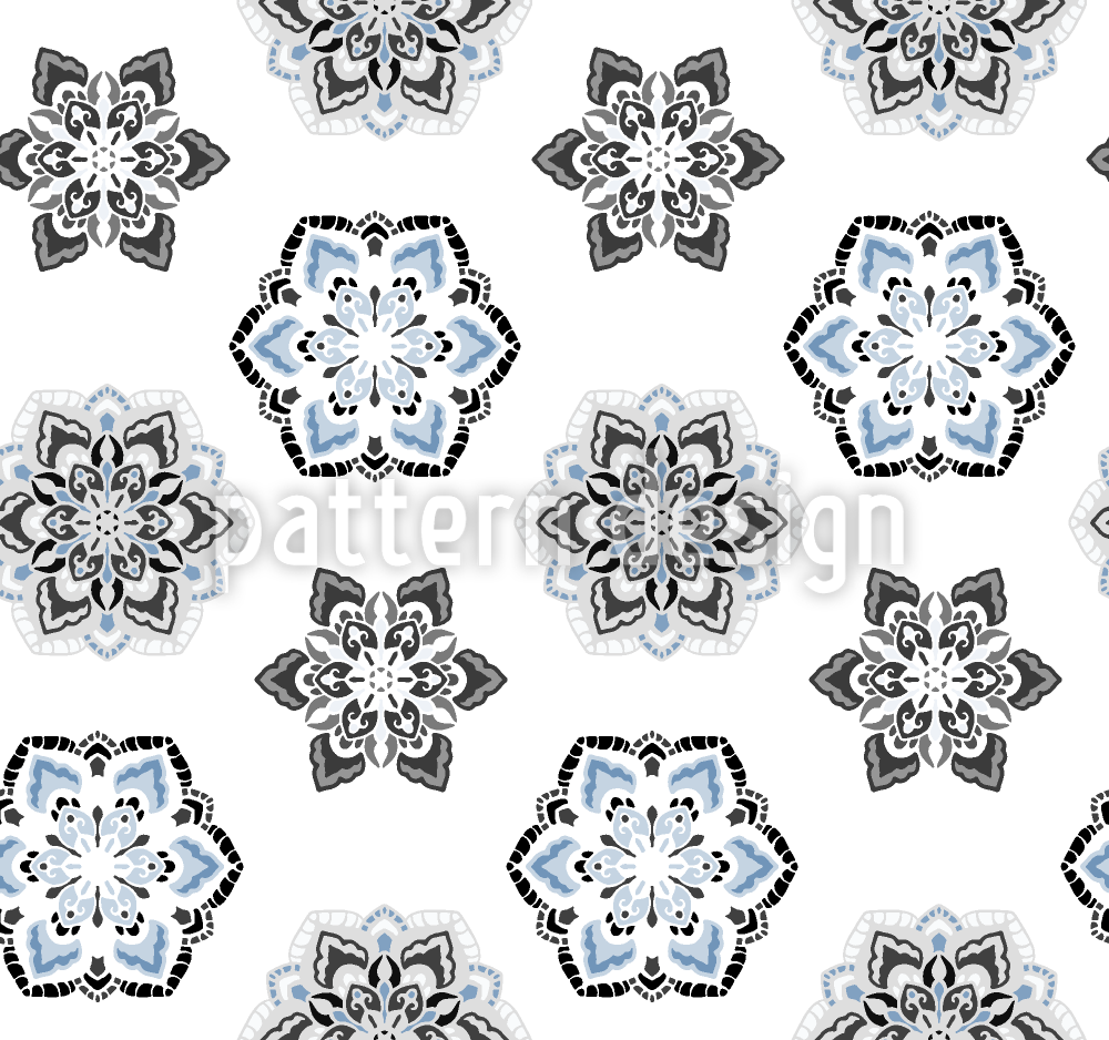 | Descrizione | Modello senza cuciture con fiori stilizzati decorati sparsi in stile mandala. | ||