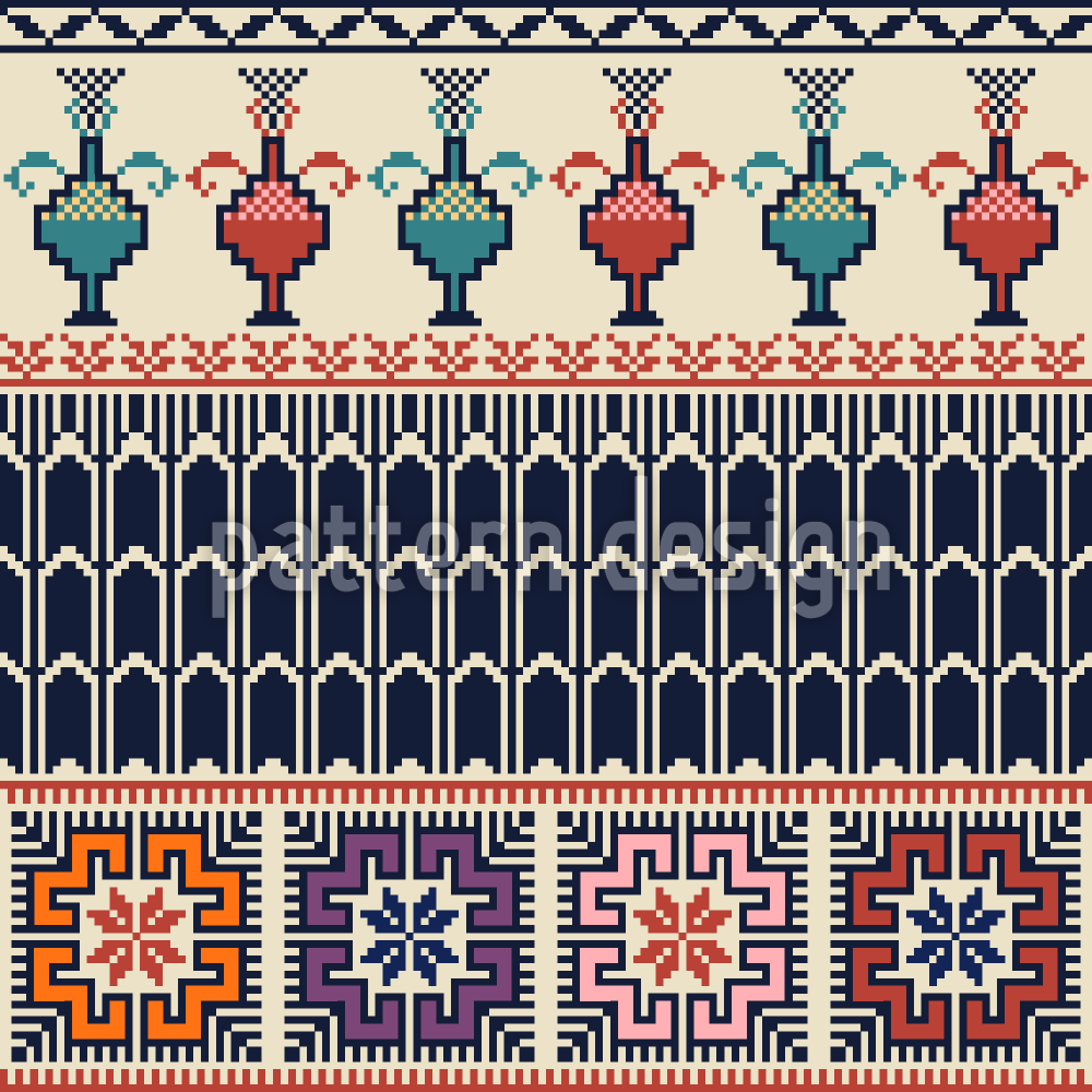 | Descrizione | Design senza cuciture con motivi tradizionali di ricamo palestinesi. | ||