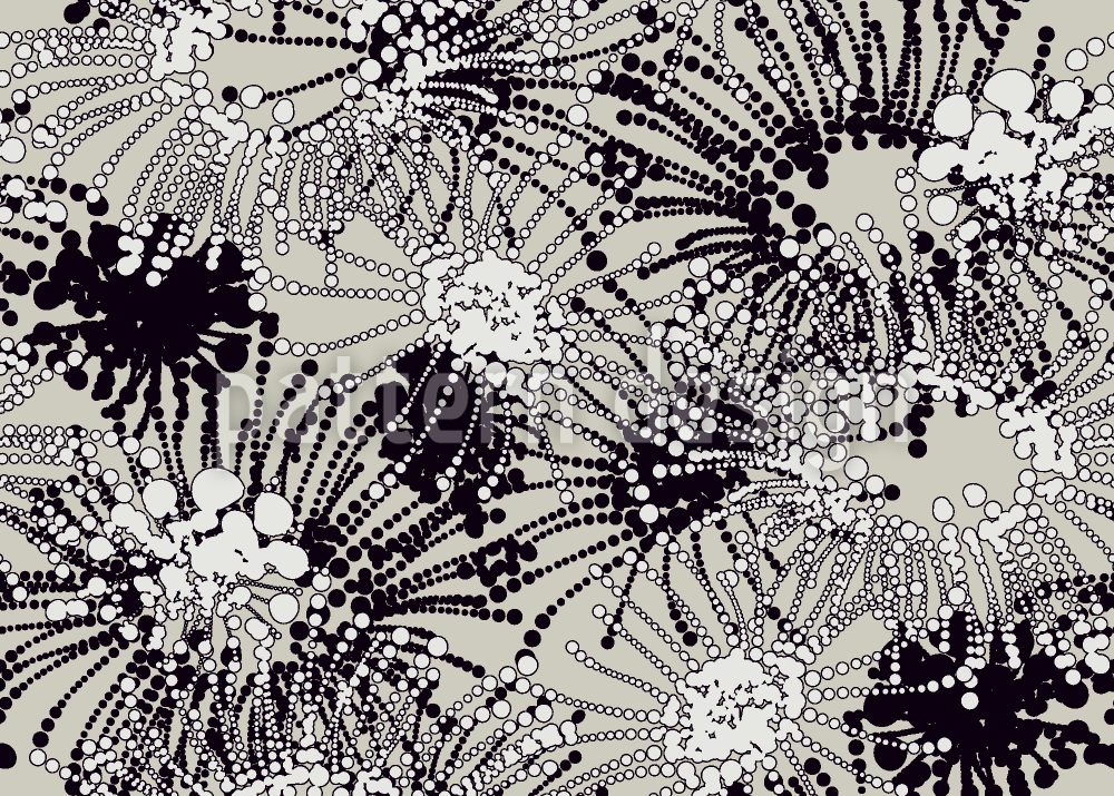 | Descrizione | C'è una sommossa nella foresta delle meduse. Ornamenti a pois bianchi e neri su sfondo color sabbia. | ||