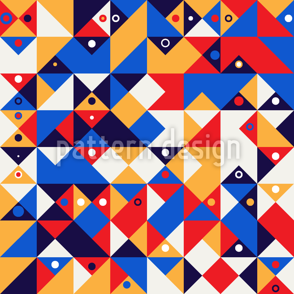 | Descrizione | Design geometrico senza cuciture con cerchi e punti sparsi su triangoli. | ||