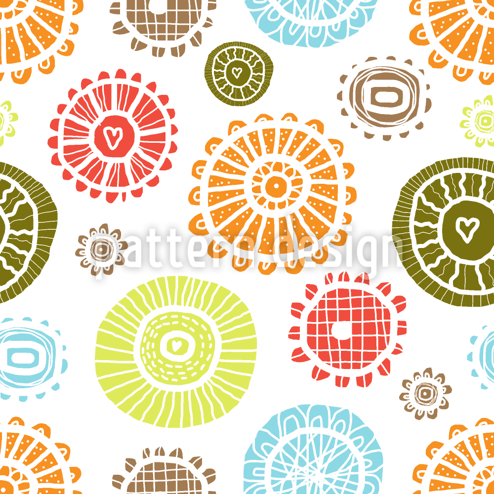 | Descrizione | Design floreale senza soluzione di continuità con fiori stilizzati sparsi in forme rotonde. | ||