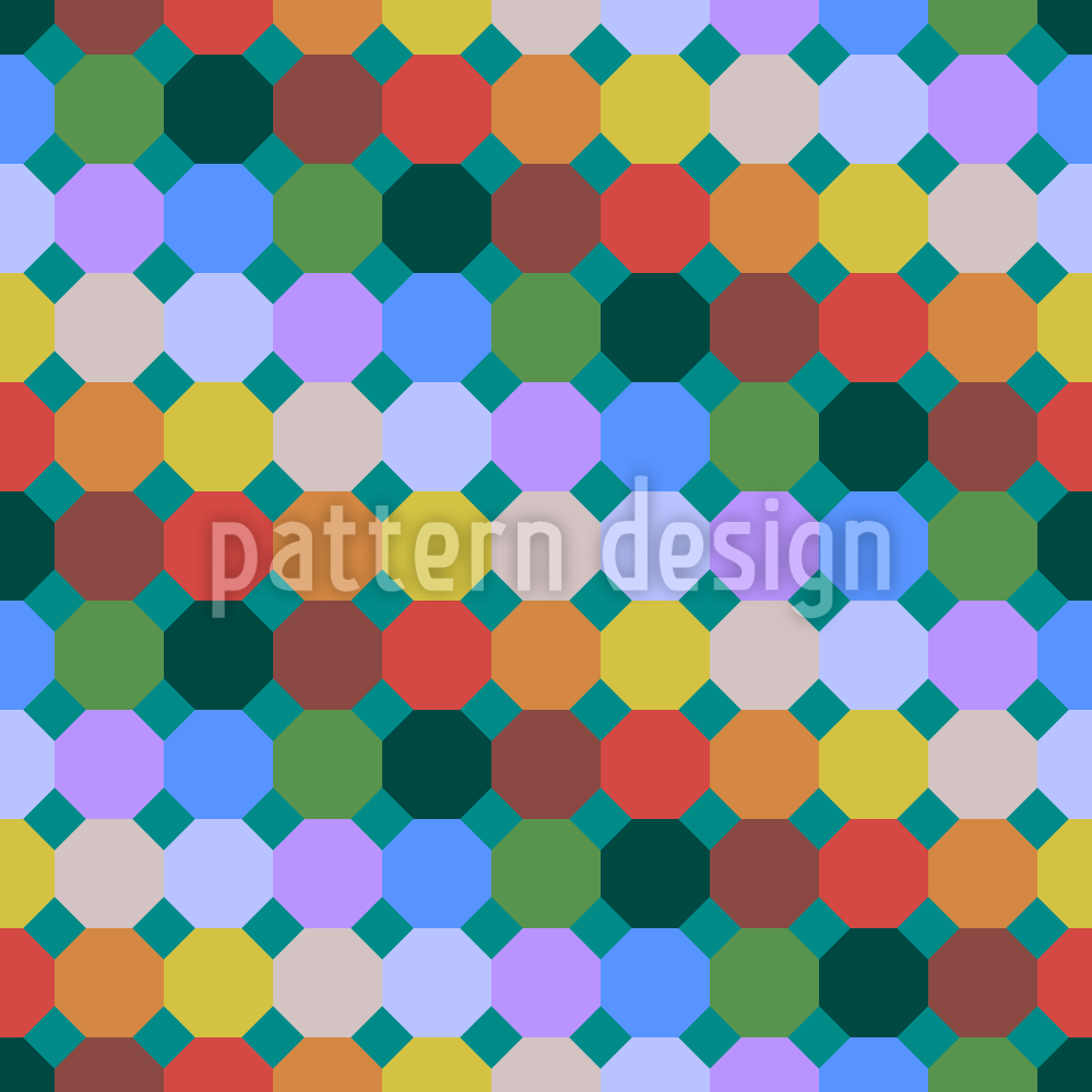 | Descrizione | Motivo geometrico semplice senza soluzione di continuità con ottagoni colorati. | ||