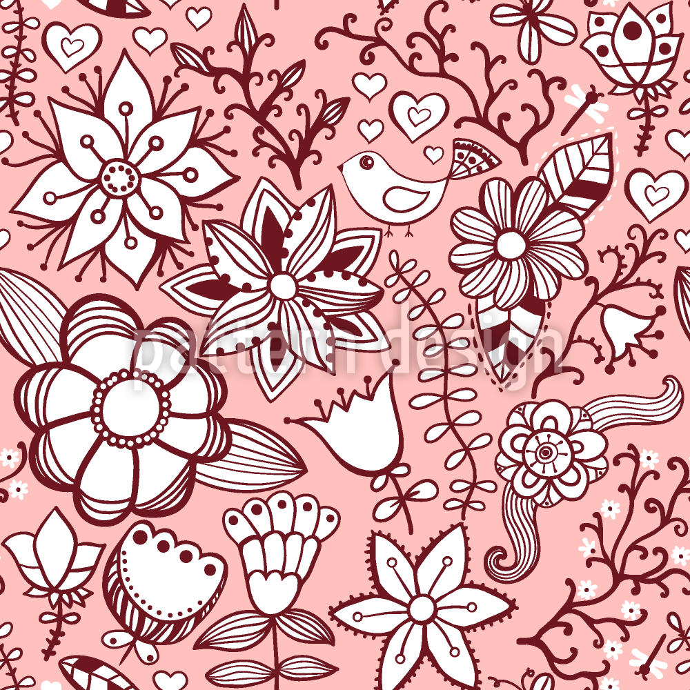 | Descrizione | Design floreale senza soluzione di continuità con fiori sparsi e uccelli canterini. | ||