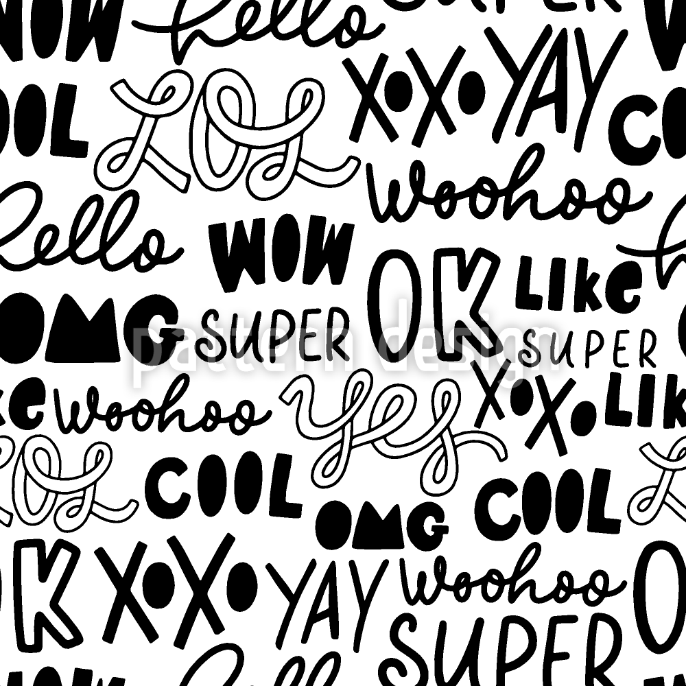 | Descrizione | Design monocromatico senza soluzione di continuità con parole sparse dal gergo giovanile. | ||