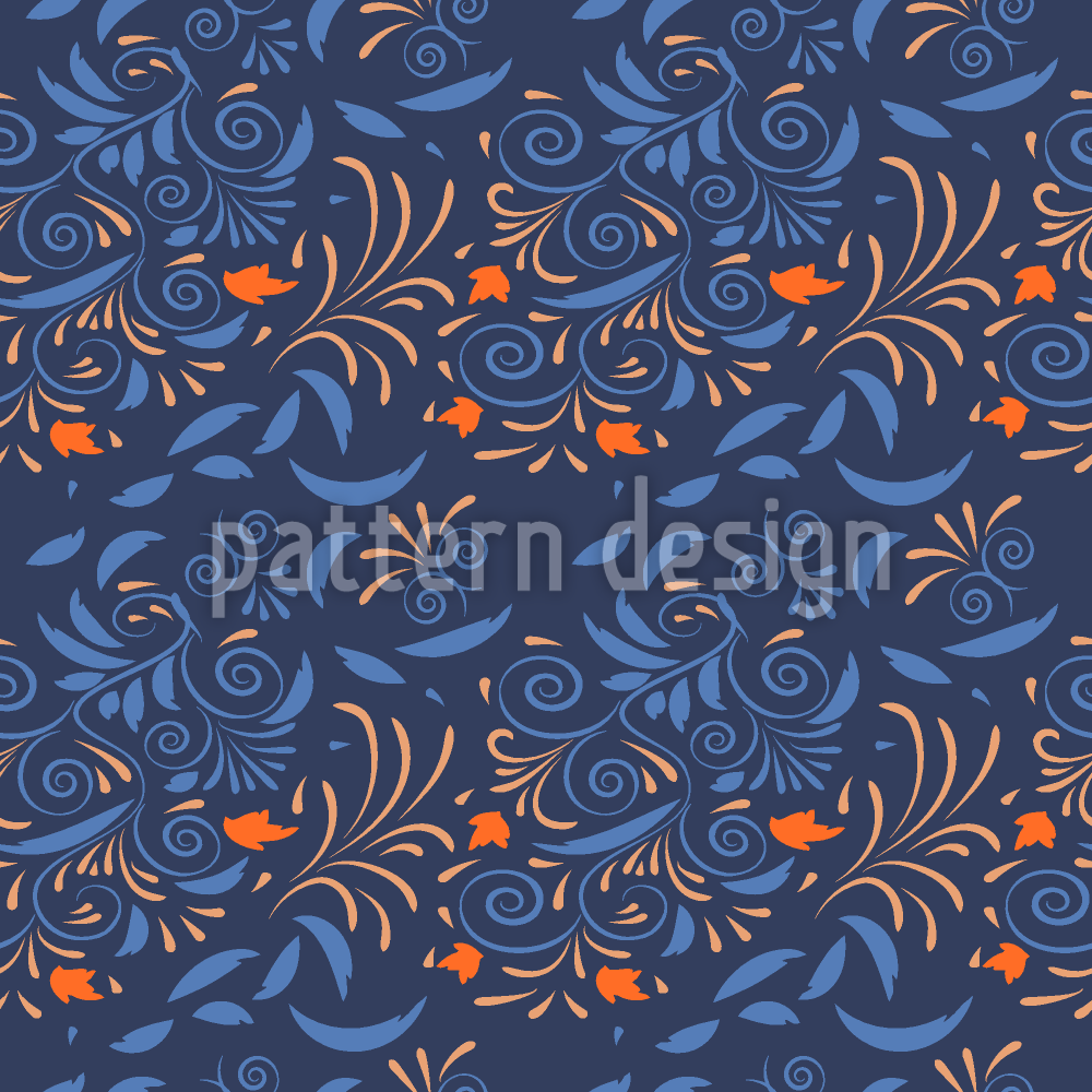 | Descrizione | Design senza soluzione di continuità con fiori sparsi e foglie su spirali. | ||