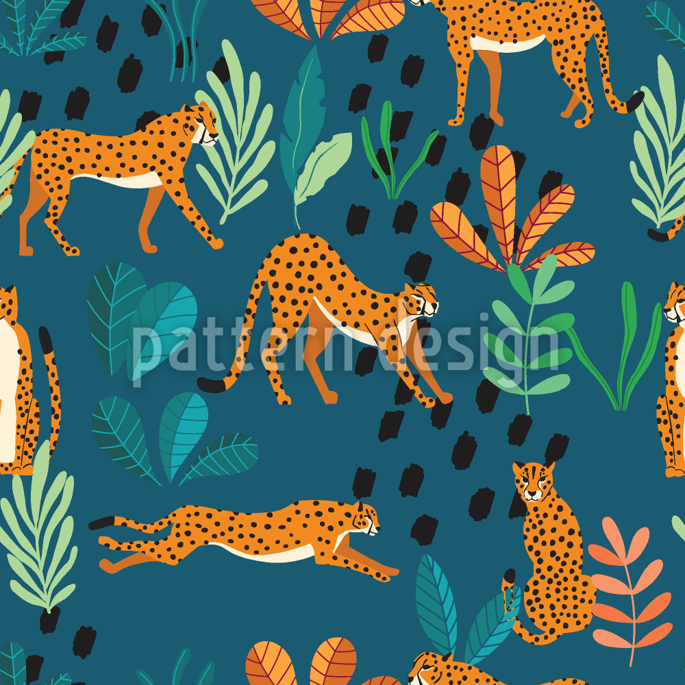 | Descrizione | Design esotico senza soluzione di continuità con ghepardi sparsi e piante tropicali. | ||