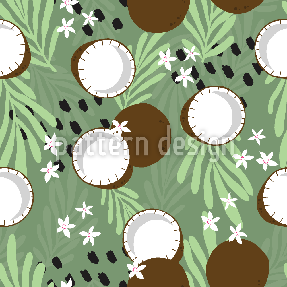 | Descrizione | Modello tropicale senza cuciture con noci di cocco sparse, fiori e foglie. | ||