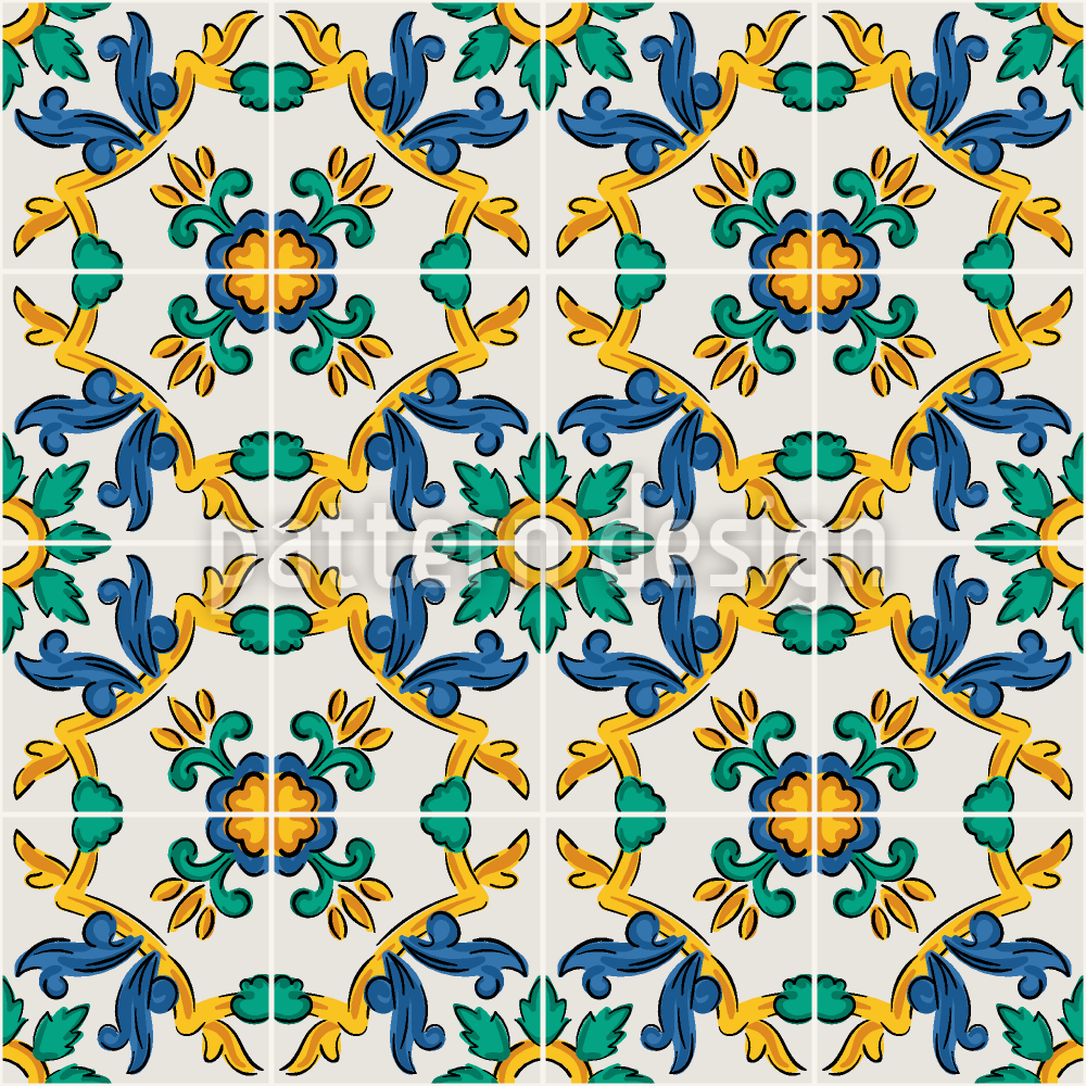 Piastrella floreale siciliana disegni vettoriali senza cuciture