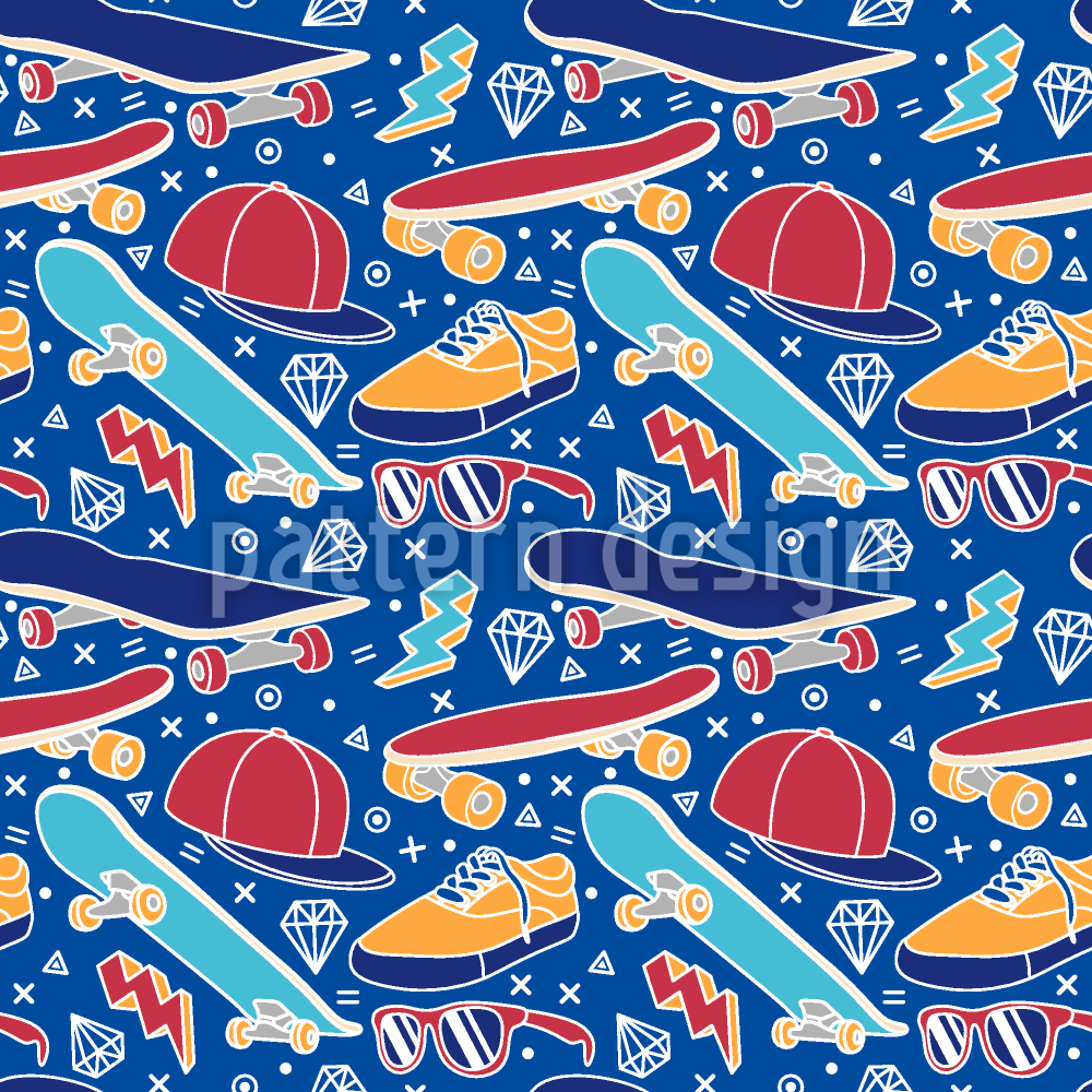 | Descrizione | Design senza cuciture con skateboard, snapback e scarpe da ginnastica. | ||