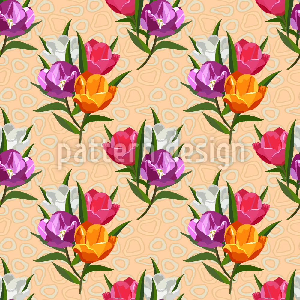| Descrizione | Motivo floreale senza cuciture con tulipani colorati su sottili anelli spessi sullo sfondo. | ||