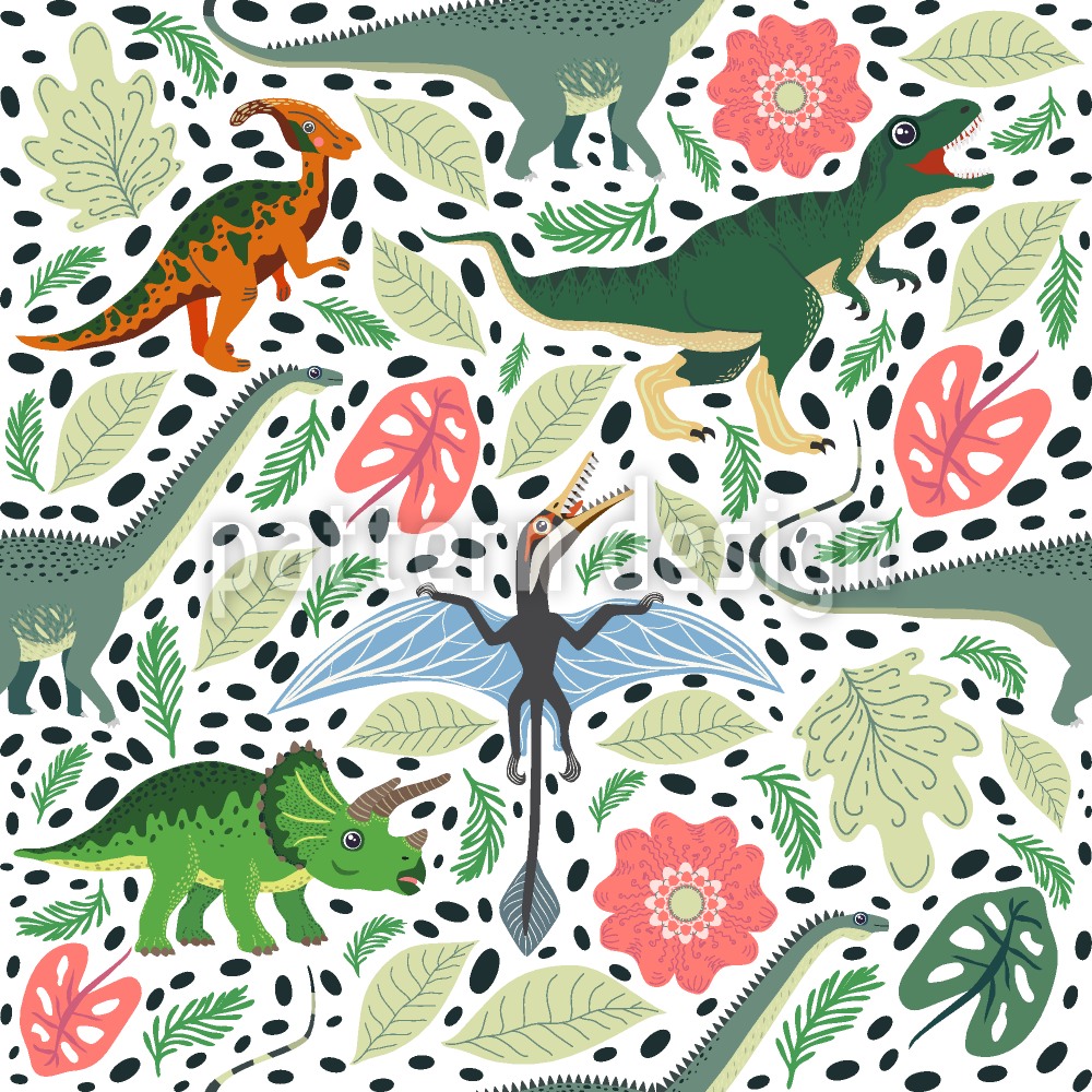 | Descrizione | Modello senza cuciture con dinosauri e foglie e fiori tropicali. | ||