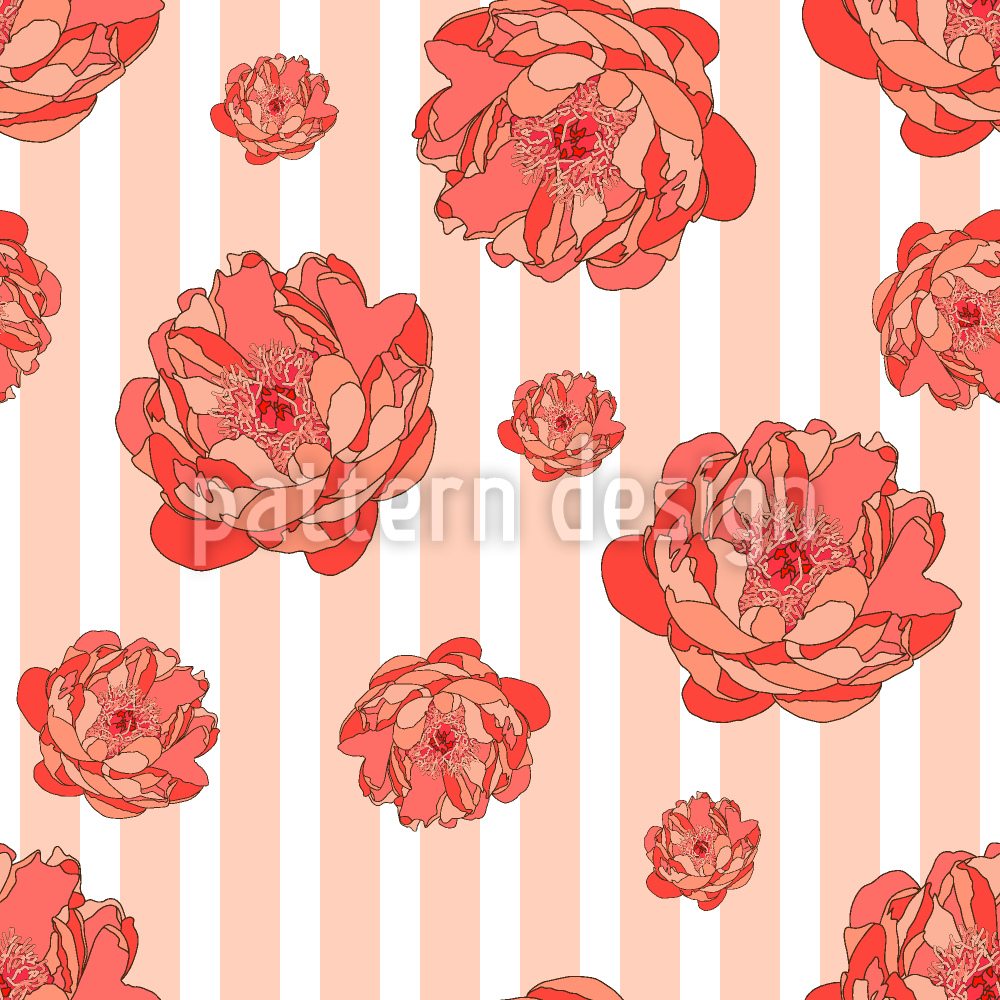 | Descrizione | Modello senza soluzione di continuità con una disposizione di peonie su sfondo a strisce. | ||