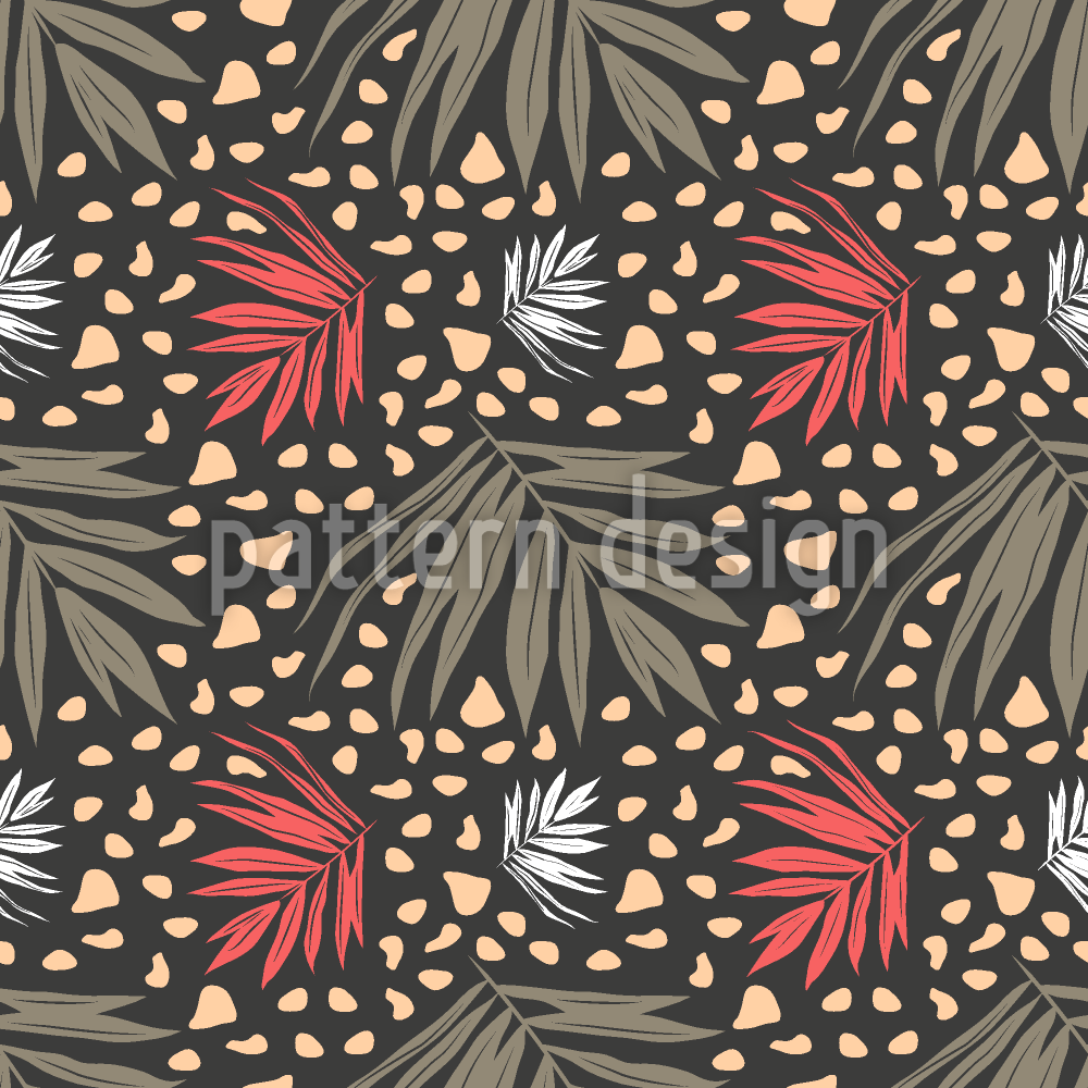 | Descrizione | Design senza cuciture con foglie di palma su ciottoli. | ||