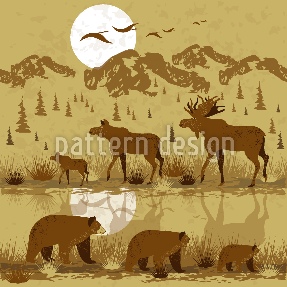 | Descrizione | Paesaggio al tramonto del Canada con montagne, foreste, fiumi, alci, orsi e uccelli. | ||