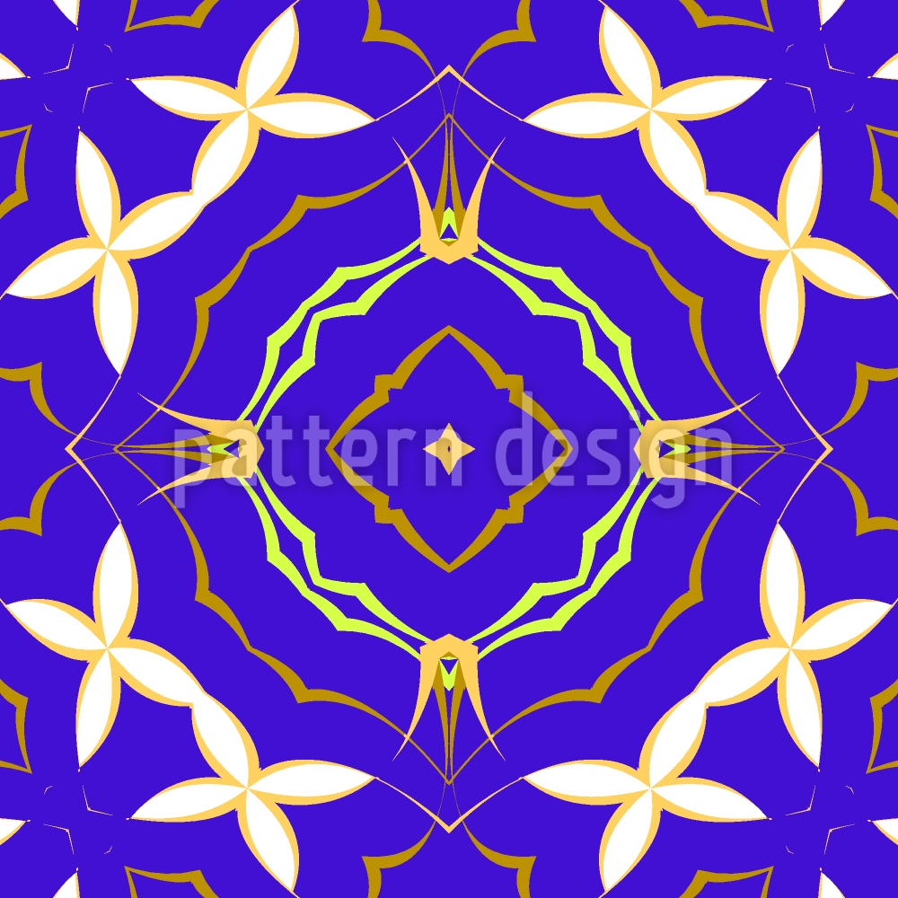 | Descrizione | Ornamenti floreali e motivi a corona su sfondo blu scuro. | ||