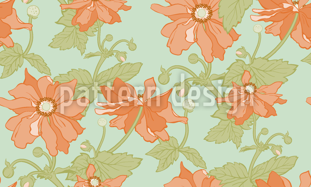 | Descrizione | Motivo floreale vettoriale ispirato agli anemoni con boccioli di fiori e foglie aperti. | ||