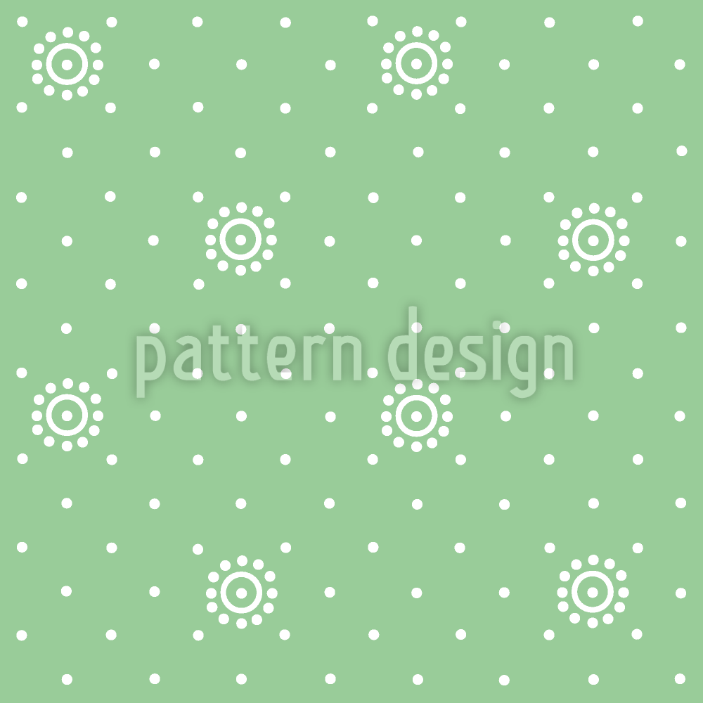 | Descrizione | Design fresco con ornamenti floreali stilizzati e punti su uno sfondo di colore verde mela. | ||