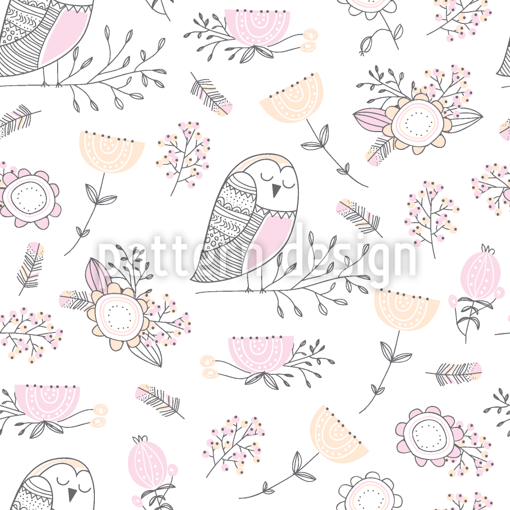| Descrizione | Motivo senza soluzione di continuità con simpatici gufi addormentati e illustrazioni floreali. | ||