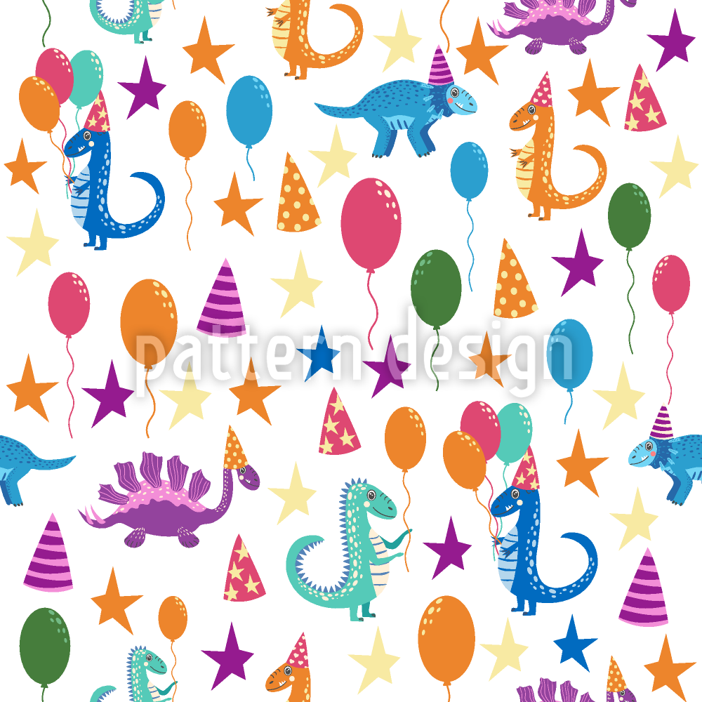 | Descrizione | Allegri dinosauri festeggiano con palloncini e cappelli da festa. | ||