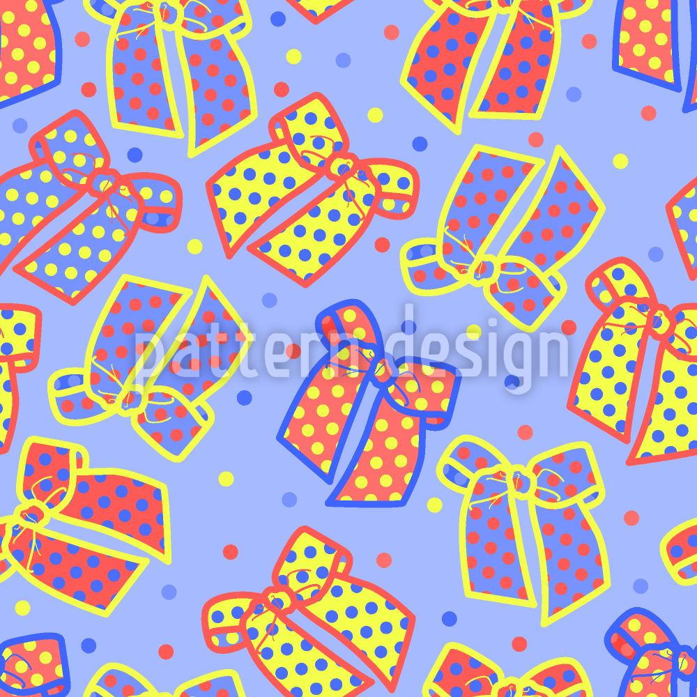 | Descrizione | Un motivo con l'immagine di fiocchi lussureggianti realizzati con nastro a pois. | ||